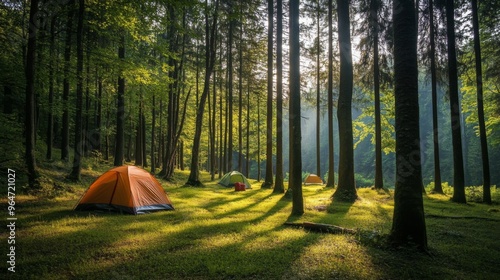 camping, tent, forest, nature, trail, sunlight, adventure, tranquil, shadow, greenery, scenic view, relaxation