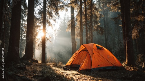 tent, wood, forest, camping, morning, light, serene, nature, adventure, peaceful, tranquil, relaxation, vacation, escape, solitude, wilderness, exploration, hike, backpacking, campfire, sleeping-bag, travel, tree, dawn, sunrise, fresh air, greenery, landscape, scenic, relaxing, get-away, trip, holiday, expedition, calm, quiet, natural
