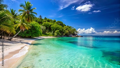 Serene Caribbean Beach in Haiti with Crystal Clear Waters and Soft Sandy Shoreline Under Blue Sky
