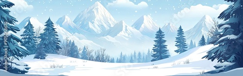 Serene Cartoon Winter Mountain Landscape