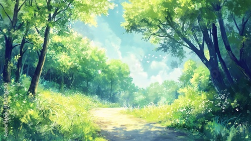 Serene Footpath in a Bright Deciduous Forest on a Sunny Day