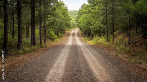 Serene Gravel Road Through Pine Forest - Rustic and Rural Charm in Nature