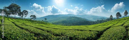 Serene Green Hills and Vibrant Valley with Blue Sky