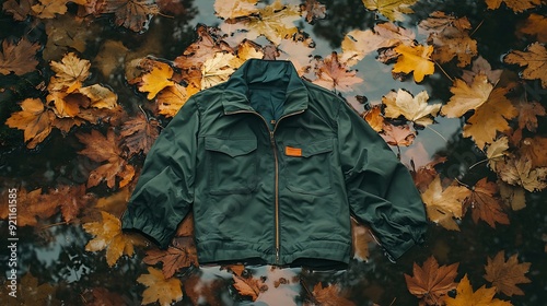 Serene Green Jacket Amongst Autumn Leaves in the Forest