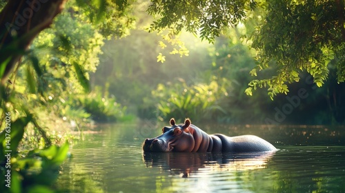 hippopotamus, water, nature, wildlife, animal, river, greenery, landscape, tranquil, habitat, environment, peaceful, ecology, morning, sunlight, flora, fauna, tropical, wetland, river bank, scenery, natural, serenity, beauty, biodiversity, adventure, wild, mammal, floating, aquatic, lush, wilderness, scene, coast, tranquilizer, calm, ecosystem, high-coloured, jungle