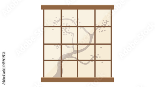 shoji, screen, japanese, design, art, illustration, tree, tree branch, artwork, tranquil, serene, peaceful, interior, decor, asian, culture, traditional, minimalist, graphic, pattern, nature, blossom, flower, beige, brown, wood, frame, panel, japanese style, oriental, aesthetic, home decor, simple, elegant, calm, zen, harmony, peace
