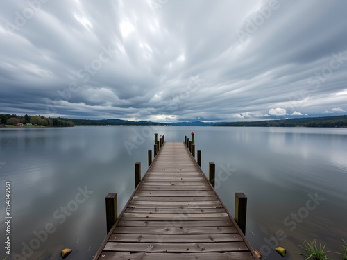 lake, dock, pier, water, cloud, sky, calm, serene, peaceful, nature, landscape, tranquil, majestic, scenic, beautiful, summer, horizon, tree, shoreline, stillness, quiet, day, cloudscape, moody, atmospheric, wood, breakwater
