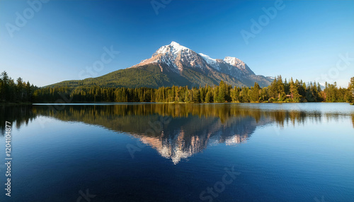 lake, mountain, nature, serenity, landscape, water, tree, blue, sky, calmness, outdoors, wilderness, scenic, calm, environment, forest, peak, summer, travel, adventure, beauty, stillness, sunlight, horizon, clear, peaceful, natural, vista, exploration, remote, picturesque, highland, alpine, pristine, scenery, wildlife, hiking, relaxation, meditation