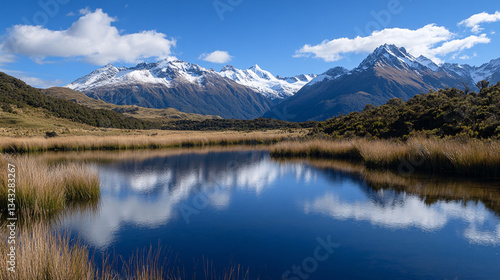 Serene lake reflections new zealand's majestic mountains in stunning nature photography