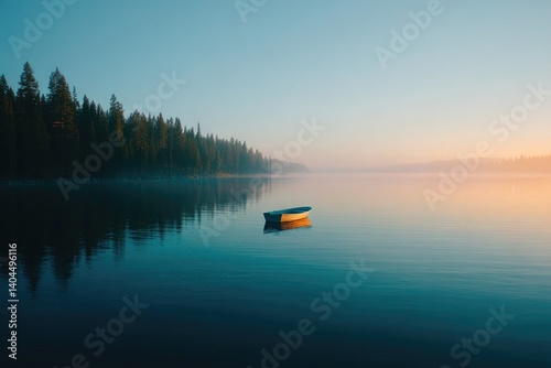 serene, lake, scene, single, dinghy, gently, gliding, across, water, image, space, mist, rise, softly, surface, creating, aethereal, atmosphere, while, sun, warm, glow, distant, shore, blurred, silhouette, people, background, maintain, sharpened, solitude, calmness, ideal, design, calming, contemplative, visual, element, expansive, room