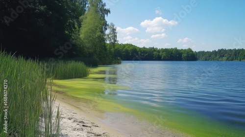 lake, nature, summer, water, landscape, scenic, tree, shore, beach, green, sky, cloud, calm, peaceful, tranquil, serene, day, sunny, bright, beautiful, environment, fresh, vegetation, grass, plant, reed, blue, horizon, view, photo, image, picture, scene, wood, forest, coastline, idylli, get-away