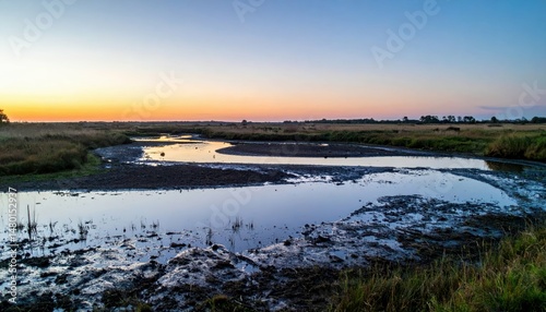 landscape, water, dawn, marshland, nature, serene, tranquil, sky, horizon, sunlight, grass, wetland, ripple, environment, scenery, evening, blue, orange, summer, beauty, peaceful, calm, natural, wildlife, ecosystem, panorama, river, shore, scenic, countryside, dusk, terrain, open, soft, flora, cloud, calmness, view, exploration, adventure, travel, relaxation, habitat