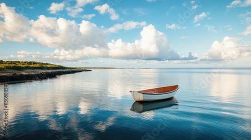 boat, water, cloud, calm, serene, landscape, nature, calmness, sky, peaceful, summer, shoreline, horizon, vacation, scenic, relaxation, travel, daylight, environment, beauty, nautical, idylli, rural, blue, floating, coast, minimalism, sunlight, sunny, adventure, exploration, leisure, calmness, simplicity, scenery, boating, shore, wave, pristine, marin, solitude, vessel, journey, escape, stillness, natural, weather