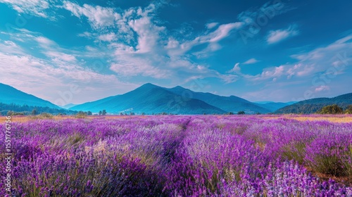 Serene Lavender Fields in Mountain Valley Stunning Summer Landscape