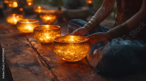 Serene Meditation Moment with Candle Lights and Singing Bowls