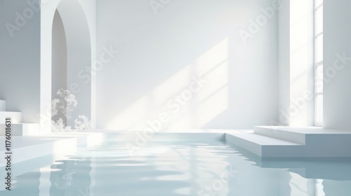pool, water, step, architecture, minimalist, white, serene, calm, light, shadow, modern, interior, design, spa, relaxation, peaceful, tranquil, clean, simple, aesthetic