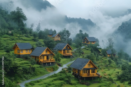Serene Mountain Cabins in Misty Landscape - Perfect Escape for Nature Enthusiasts