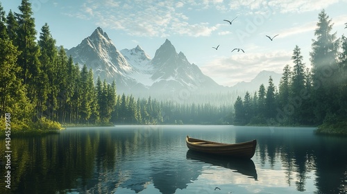 lake, mountain, forest, nature, landscape, scenic, view, scenery, wilderness, panorama, water, calm, peaceful, tranquil, serene, beautiful, amazing, stunning, picturesque, boat, canoe, tree, pine, fir, timberland, sky, cloud, sunlight, morning, mist, fog, bird, wildlife, summer, spring, travel, adventure, relaxation, escape, meditation, quiet, idylli, serenity, harmony, green