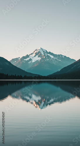 Serene Mountain Lake Reflection Stunning Sunrise Panorama of Snow capped Peak