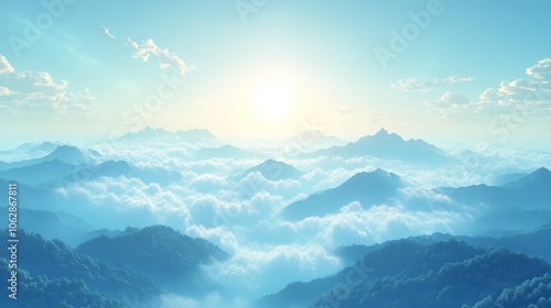 mountain chain, mountain peak, mountain landscape, sky, cloud, sunlight, blue skies, white cloud, cloudy, scenic, nature, panorama, serene, peaceful, tranquil, majestic, aerial view, highland, high altitude, horizon, dawn, sunrise, daybreak, morning light, wilderness, travel