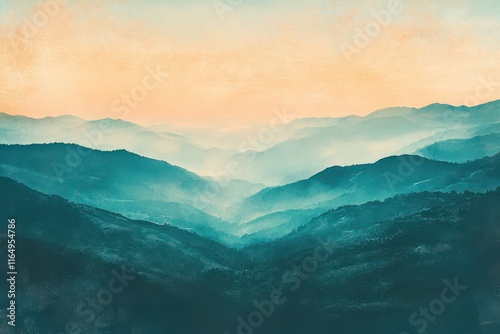 serene, mountain, landscape, hand, painted, art, style, soft, glow, lighting, intricate, background, detail, digital, nature, scenic, artwork, tranquil, hill, vale, gradient, colours, peaceful, view, sky, horizon, beauty, evening, atmospheric, depth, visual, calm, artistic, imagery, silhouette, exploration, vista, reflections, remote, natural, environment, design, creative, texture, subtile, panorama, scenery, daylight