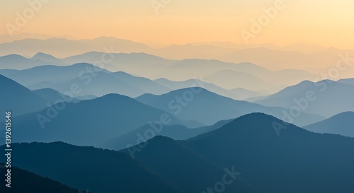 Serene Mountain Ranges at Sunrise: A Landscape Photography Capture AI Generated