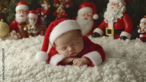 newborn, baby, santa, outfit, christmas, sleeping, peaceful, serene, decor, festive, holiday, infant, costume, red, white, seasonal, celebration, soft, cuddly, adorable, cute, dreaming, children, christmas, december, tradition, winter, plush, fabric, snow, figurine, comfort, warmth, joy, christmas, portrait, photo, santa, gift, merry, cheer, slumber, innocence, cosy, festivity