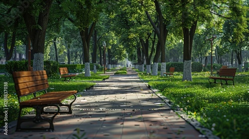 park, pathway, tree, bench, greenery, sunlight, nature, calmness, landscape, walking, relaxation, scenic, foliage, vibrant, spring, summer, garden, serene, peaceful, leisure, recreation, urban, path, inviting, environment, plant, flower, shade, paseo, afternoon, beauty, natural, public, earth, springtime, fresh, escape, streetscape, quiet, scenery, explore, view, calm, restful, atmosphere