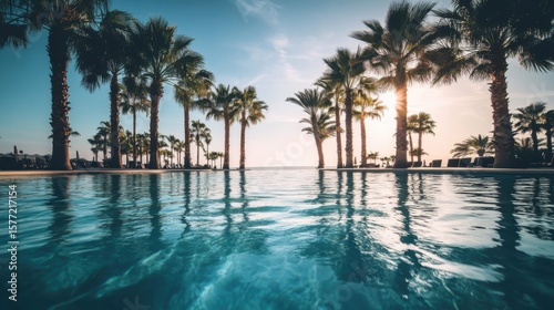 pool, palm, tree, decor, landscape, sunlight, clear, sky, relaxation, vacation, tropical, tranquil, paradise, summer, nature, horizon, water, leisure, resort, beauty, scenic, calm, blue, serene, vibrant, warm, idylli, calmness, environment, view, escape, ray, calmness, ambience, scenery, waterfront, hotel, lush, culture