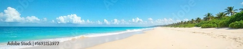 Serene Sandy Beach Endless Horizon, Tranquil Ocean, Perfect Summer Vacation
