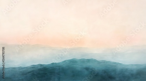 Serene seascape with gentle waves, tranquil ocean horizon melding soft pastels, ideal for calming backgrounds and relaxation themes.