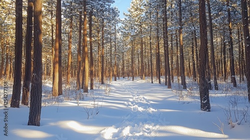 forest, snow, path, tree, winter, landscape, nature, calmness, wood, sunlight, cold, seasonal, scenery, cold weather, snow-covered, pine, solitude, peaceful, scenic, hiking, footprint, bright, blue skies, chilly, wilderness, north, flora, environmental, ecology, snowflake, adventure, exploration, beauty, natural light, calm, scenic view, photo, rural, destination, travel, timberland, branch