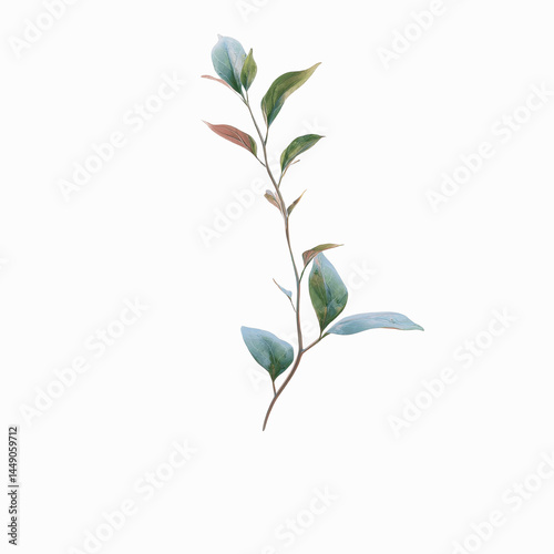 plant, sprig, stem, leaf, teal, foliage, greenery, botanical, flora, nature, organic, natural, minimalist, simple, elegant, delicate, graceful, serene, calm, peaceful, tranquil, isolated, studio shot, hi-res, detailed, texture, pattern, design element, illustration, watercolor, painting, art, aesthetic, beauty, colours, hue, shade, tone, spring