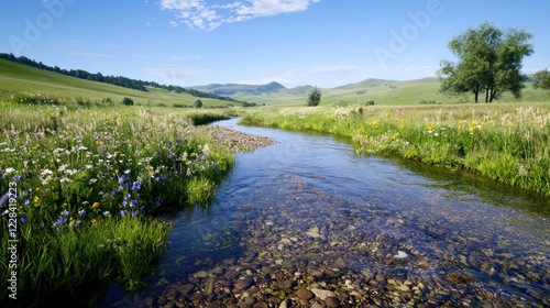 Serene Stream in Wildflower Meadow