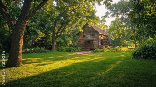 house, mill, tree, grass, sunlight, nature, wood, green, rural, landscape, summer, morning, peaceful, tranquil, serene, calm, old, historic, wooden, building, farmhouse, countryside, idylli, scenic, beautiful, photo, image, picture, photo, shot, view, scene, outdoors, environment, estate, property, garden, lawn, park, leafy