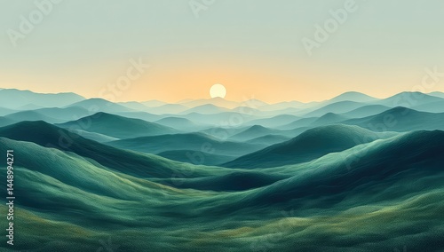 mountain, landscape, sunrise, sunset, hill, mountain, nature, scenery, view, panorama, background, wallpaper, serene, peaceful, calm, tranquil, beautiful, majestic, breathtaking, rolling hills, fog, mist, hazy, dawn, dusk, wilderness, environment, ecology, travel, adventure, exploration, picturesque, scenic, idylli, tranquil scene, dreamy, soft light, aerial view, birds eye view, high altitude, horizon, huge, expansive, digital artwork, illustration