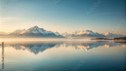 Serene Sunrise Over Snow-Capped Mountains Reflected in a Still Lake