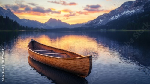 canoe, lake, mountain, sunset, water, nature, serenity, peace, calm, landscape, sky, wood, boat, horizon, twilight, scenic, travel, adventure, outdoors, explore, tranquil, still, evening, gold, colours, mountain, tree, forest, view, peaceful, beautiful, idylli, relaxing, vacation, summer, photo, image, photo, scene