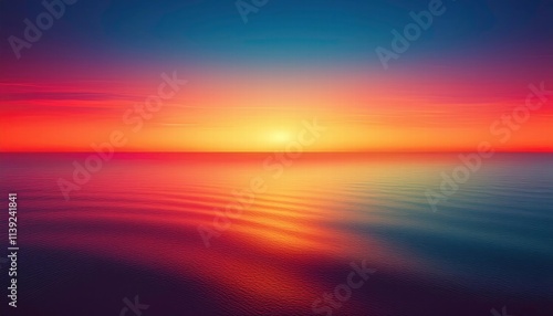Serene Sunset Horizon: A breathtaking sunset paints the sky with vibrant hues of red, orange, and purple, casting a warm glow on the tranquil ocean surface. The horizon blurs into a dreamy landscape.