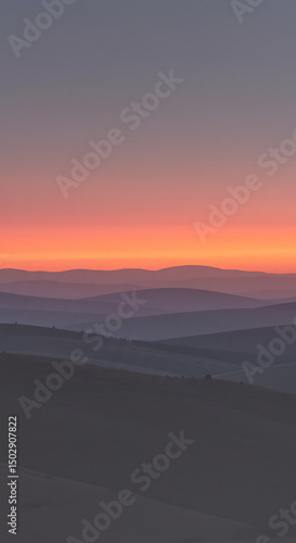 Serene Sunset Landscape Rolling Hills and Vibrant Sky at Dusk