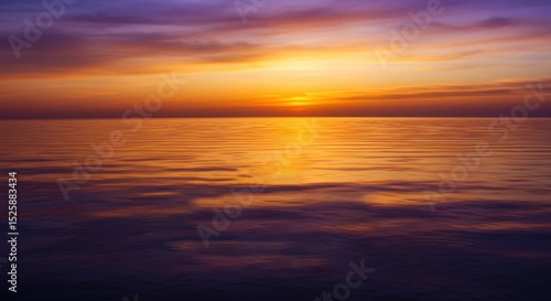 Serene Sunset over Calm Ocean Waters: A Vibrant Display of Orange and Purple Hues at Twilight