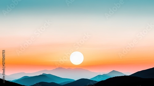 Serene sunset over layered mountains with vibrant colors creating a tranquil landscape