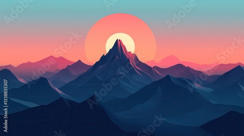 sunset, sunrise, mountain, landscape, polygonal, geometric, digital artwork, illustration, graphic, design, background, wallpaper, nature, scenery, peak, range, hill, horizon, sky, cloud, sun, light, colours, vibrant, pastel, pink, purple, blue, dark, shadow, abstract, minimalist, modern, artwork, art, serene, calm, peaceful, tranquil, beauty, majestic, awesome, inspirational, dreamy, fantasy, imaginary