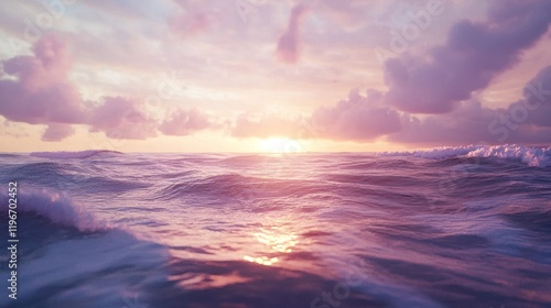Serene Sunset over the Ocean: A Breathtaking View of Pink Hues and Gentle Waves