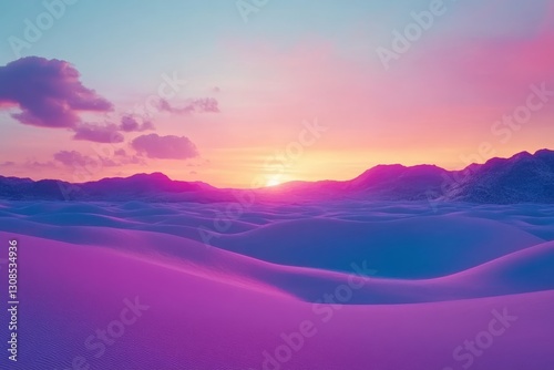 Serene Sunset Over Waves of Colorful Sand Dunes Under Cloudy Sky