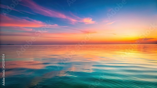 Serene Sunset Reflection on Calm Ocean Waters, Painted in Vibrant Hues of Orange, Pink, and Teal