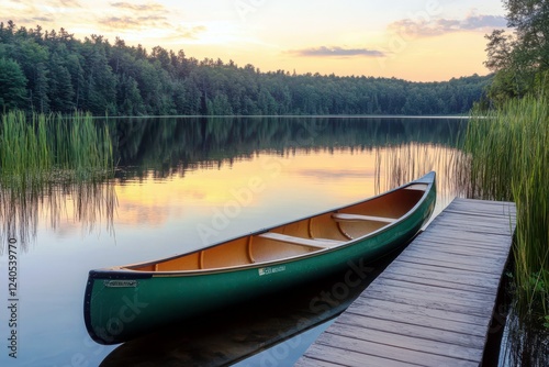 canoe, lake, water, sunset, nature, landscape, serenity, calm, recreation, adventure, travel, tour tourism, fishing, tree, forest, wood, pier, calmness, ecosystem, beauty, scenery, summer, view, peaceful, relax, leisure, exploring, sunlight, vibrant, sky, colours, natural, environment, solitude, summer evening, vacation, remote, quiet, boating, paddle, coastline, shoreline, green, plant, wildlife, aquatic, harmony
