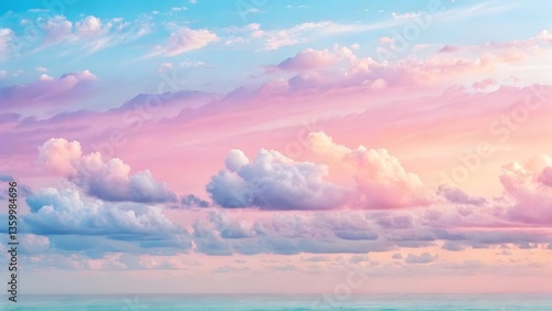 Serene Sunset Sky Over Calm Ocean with Soft Colorful Clouds