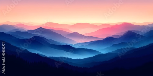 mountain, twilight, landscape, nature, serene, dreamy, blue, pink, layer, horizon, tranquil, scenic, outdoors, scenery, sunset, sky, peaceful, silhouette, forest, gradient, panorama, vacation, adventure, hiking, exploration, travel, wilderness, natural beauty, idylli, breathtaking, evening, calm, viewpoint, wavy, atmospheric, color palette, calming, dramatic, picturesque, calmness, mountain chain, peace, depth, beauty, aesthetic