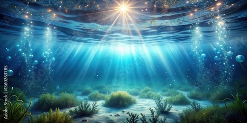 Serene Underwater Scene Sunbeams Illuminate Aquatic Plants and Rising Bubbles